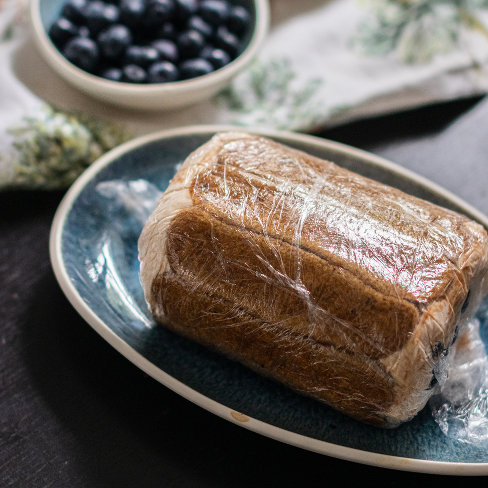 Шаг 8. Утром пленку снимаем, посыпаем рулет какао, нарезаем на порционные кусочки и сервируем в самых красивых тарелках – лазурно-голубые переливы посуды из коллекции Junto Aquamarine идеально оттенят наш нежный десерт с голубикой.