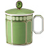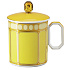 В декоре посуды используются фирменные цвета Swarovski: зеленый, розовый, желтый и синий, графические рисунки, обрамленные золотыми вставками и фирменные кристаллы Swarovski.