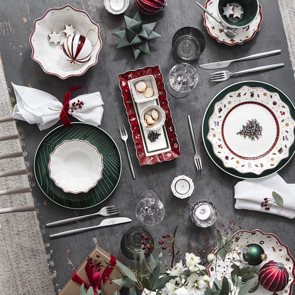Коллекция посуды Toy’s Delight привнесет ностальгическое рождественское настроение в ваш дом. Многогранная и стильная классическая посуда для завтрака, бранча и рождественского ужина зачаровывает традиционными цветами, роскошными узорами и оригинальными формами. Коллекция Toy's Delight предлагает множество интересных предметов для сервировки стола на рождественскую тематику. Каждый год фабрика Villeroy&Boch создает яркие, красочные идеи декора и создает новые сказочные истории, которые дарят нам радость и веселие.